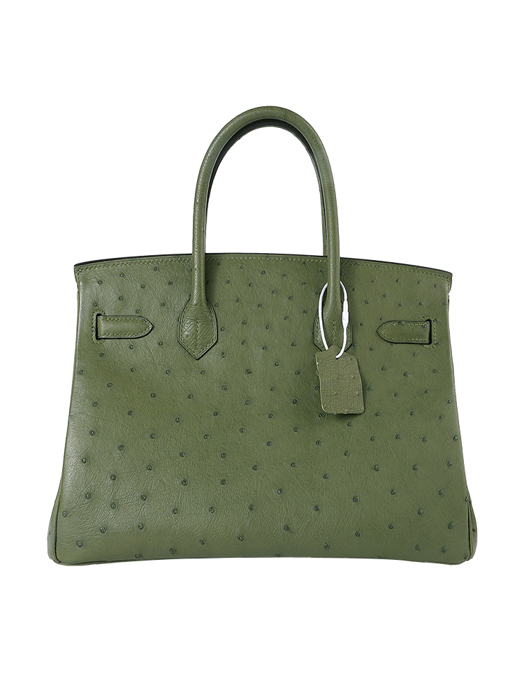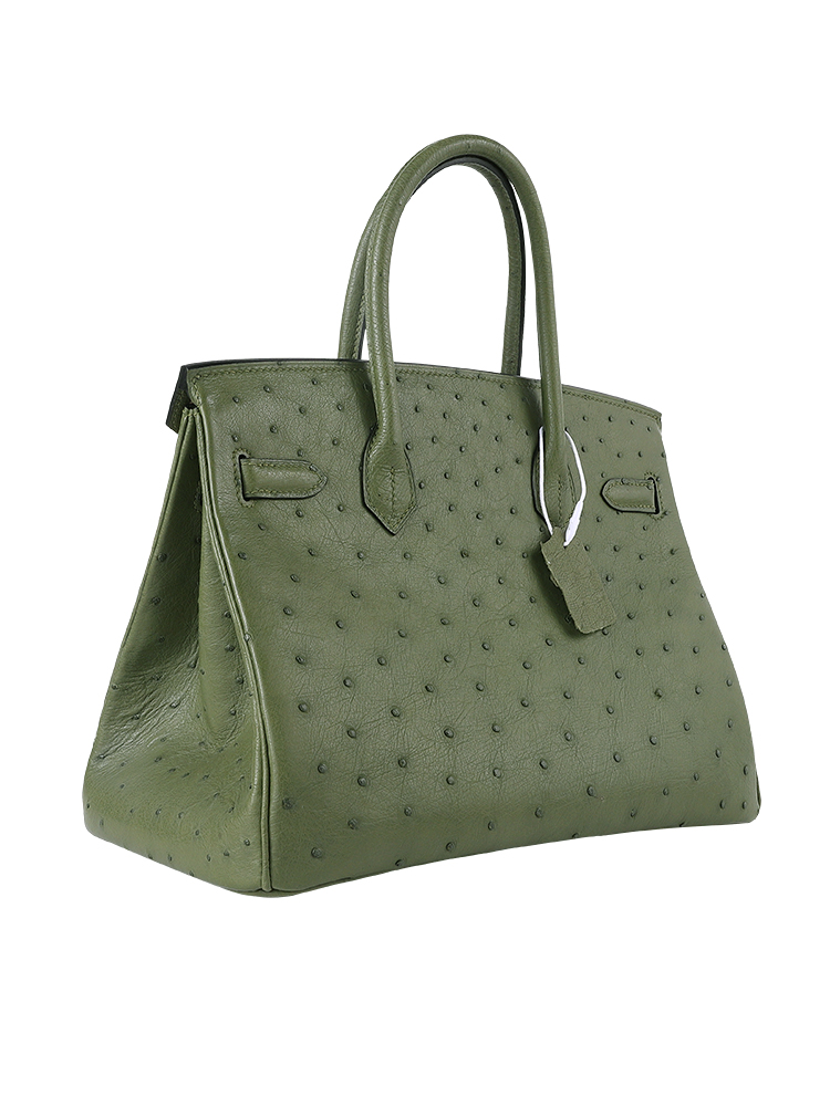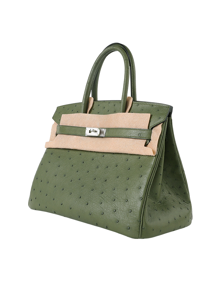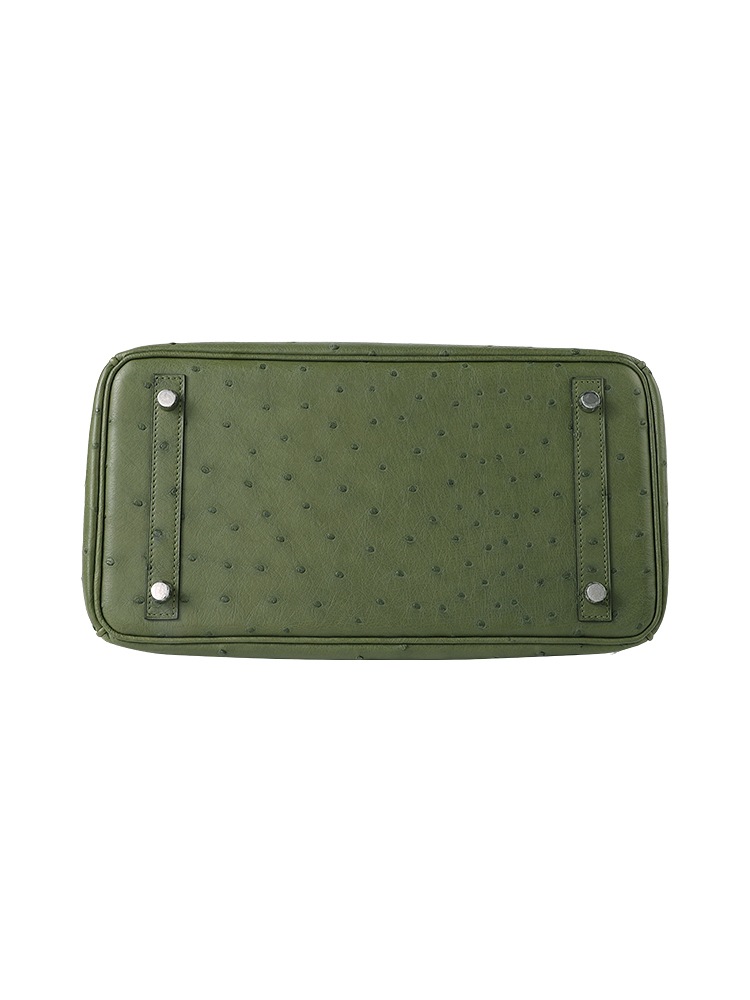 Birkin 30 in Premium Grade-A Ostrich Leather – Olive Green with Palladium Hardware (Classic Women’s Handbag, Blind Stamp)