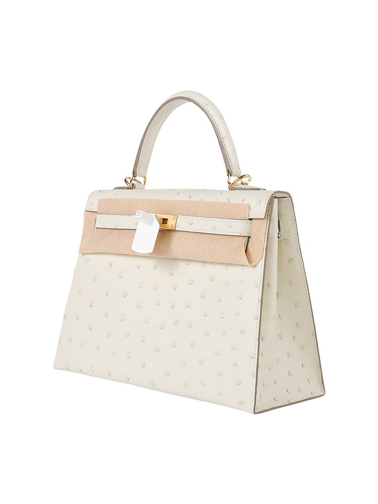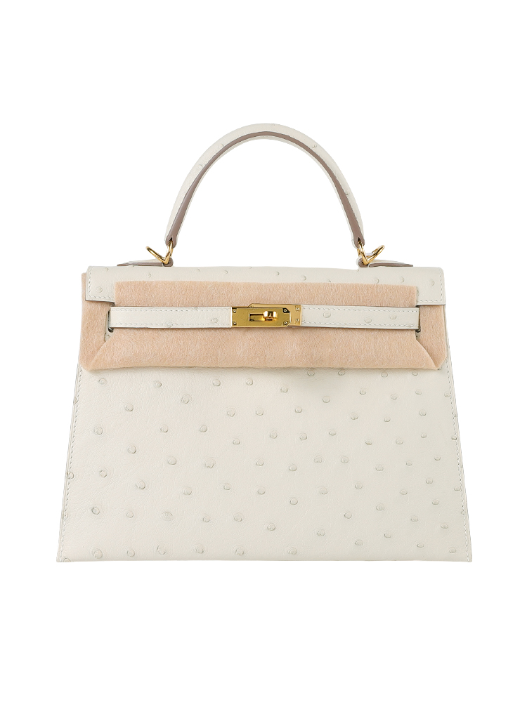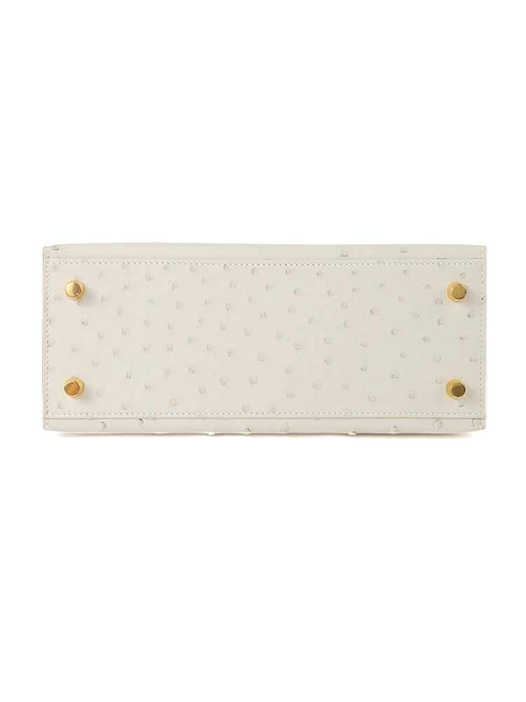 Kelly 25 Sellier in Porosus Ostrich – Vanilla Cream with Gold Hardware