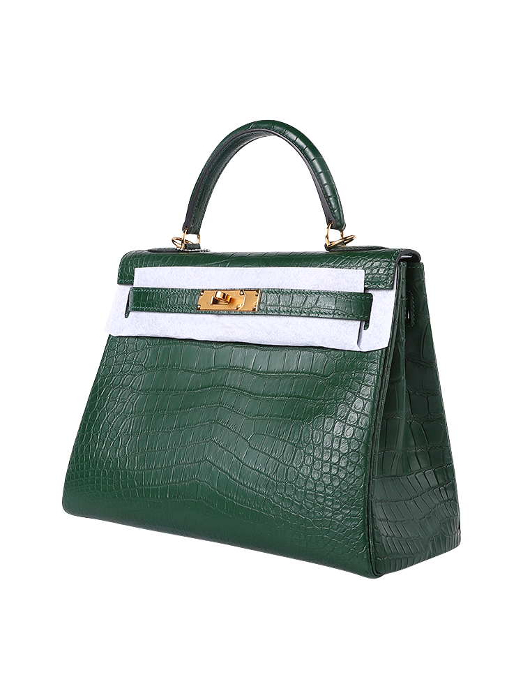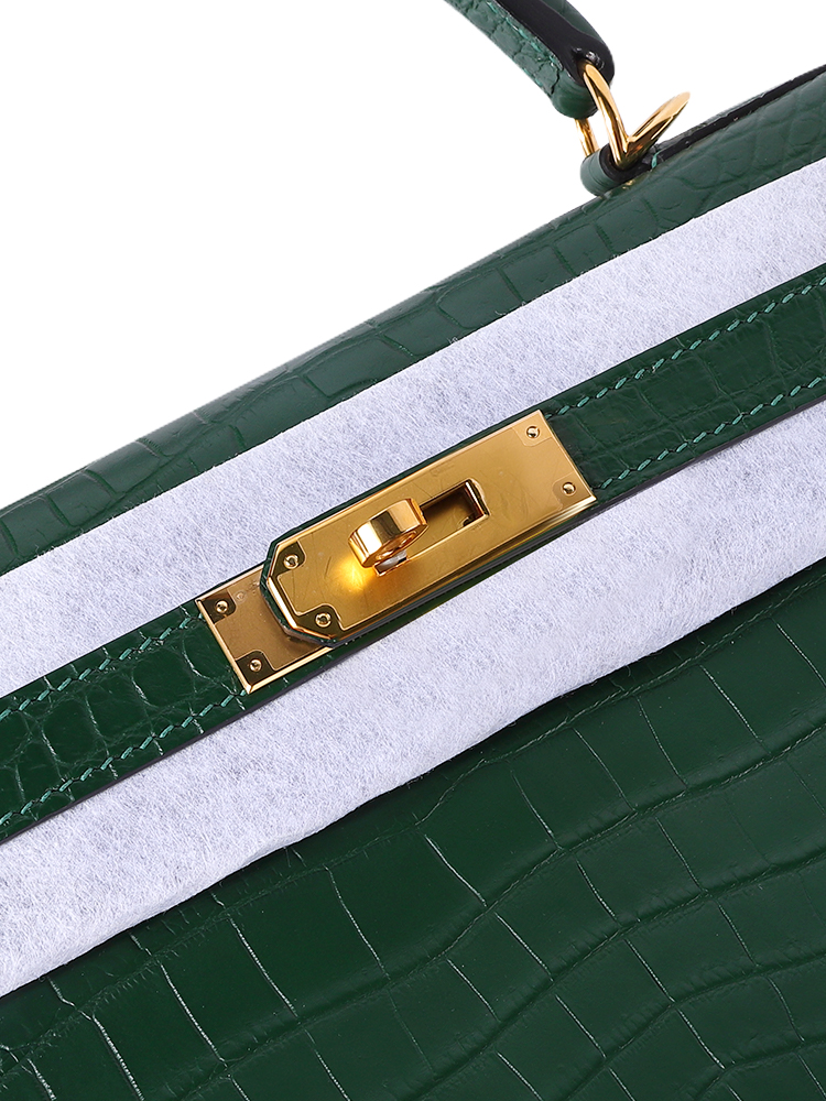 Kelly 28 Retourne in Exotic Siamese Crocodile (Grade A Belly Cut) – Cypress Green with Gold-Tone Hardware
