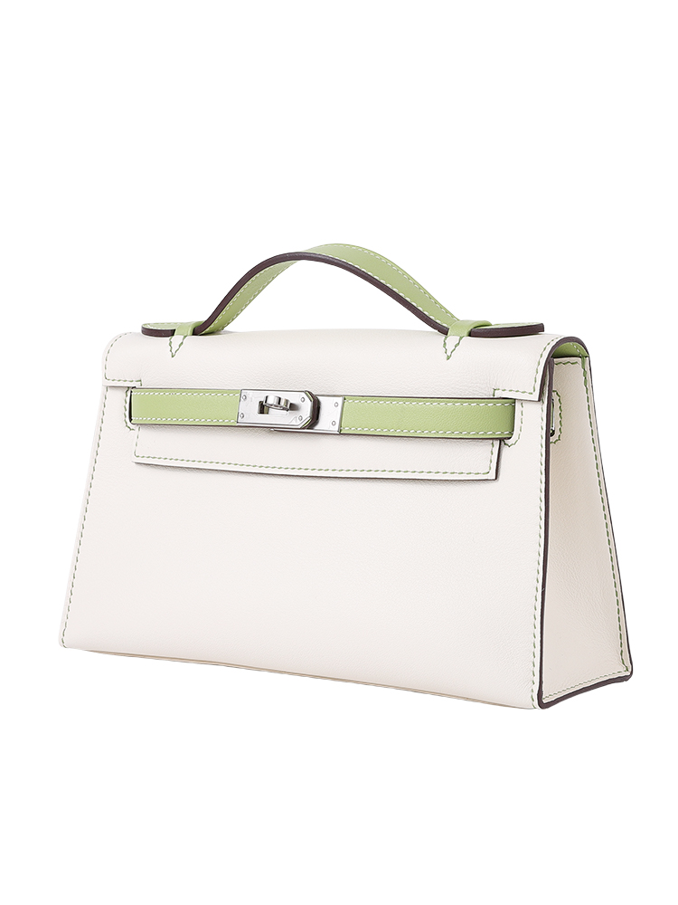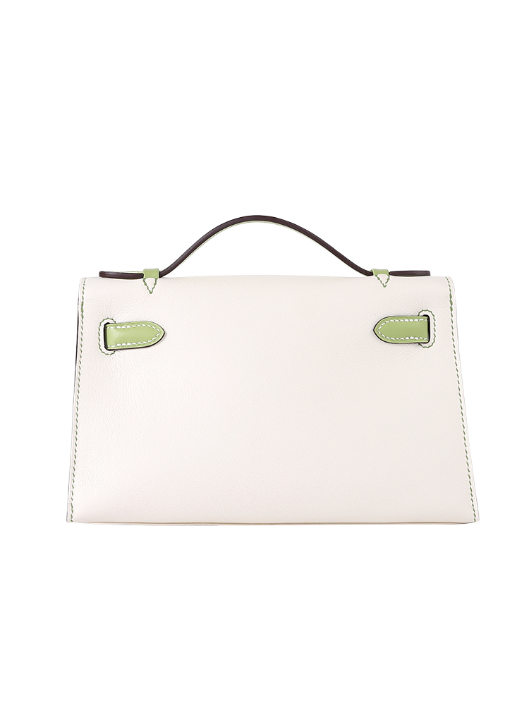 SF Kelly22 Calfskin Bag-Milk White & Okra Green Glazed Leather with Silver Hardware