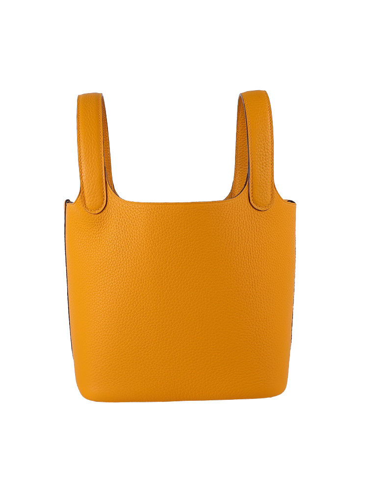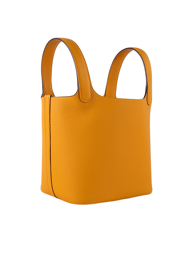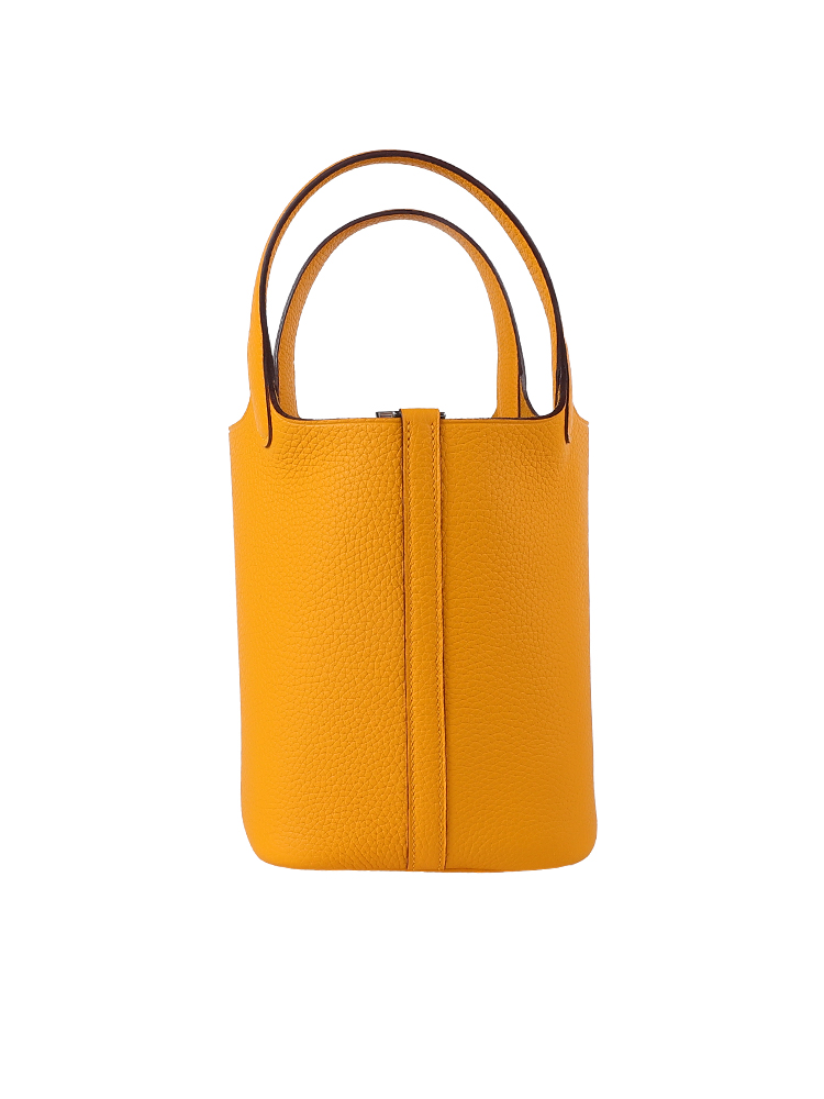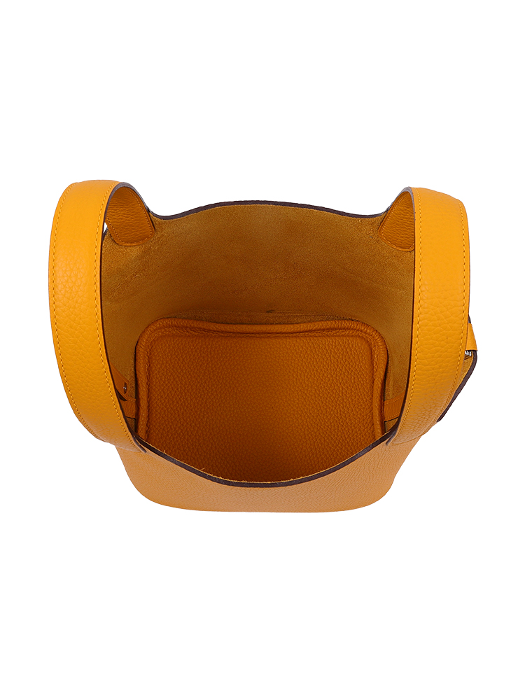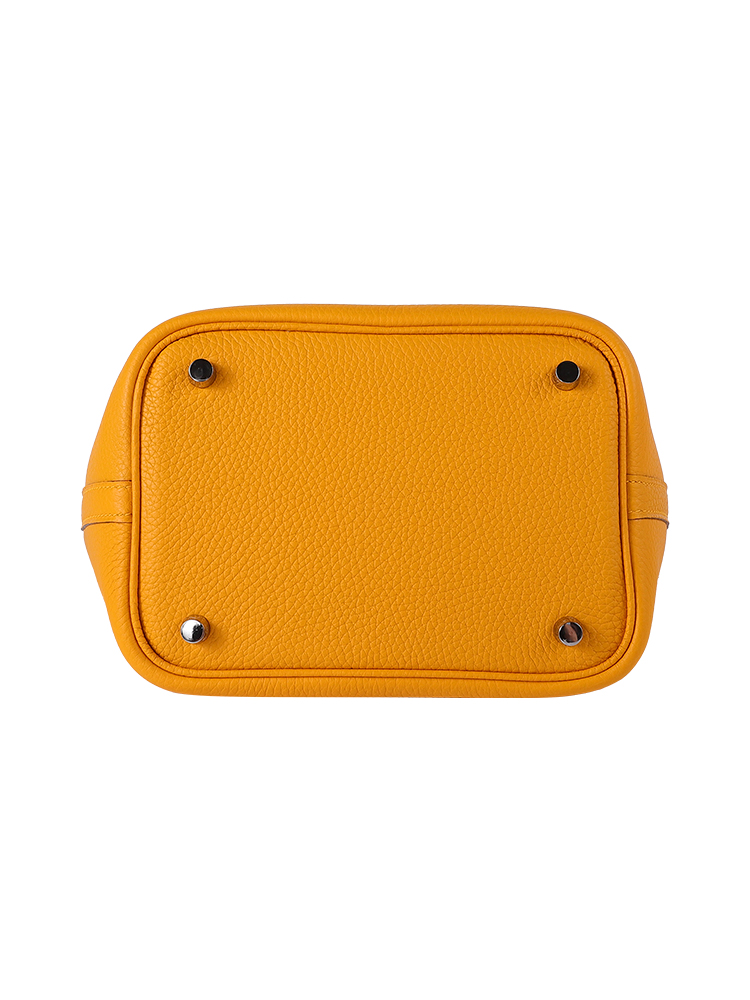 TC Leather Picotin Lock Bag (Includes Strap) – Amber Yellow with Silver Hardware